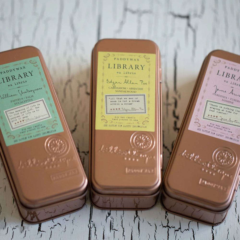 Library Author Candle Soy Wax 2oz Tin - Charles Dickens (Tangerine + Juniper + Clove) is backordered and will ship as soon as it is back in stock.