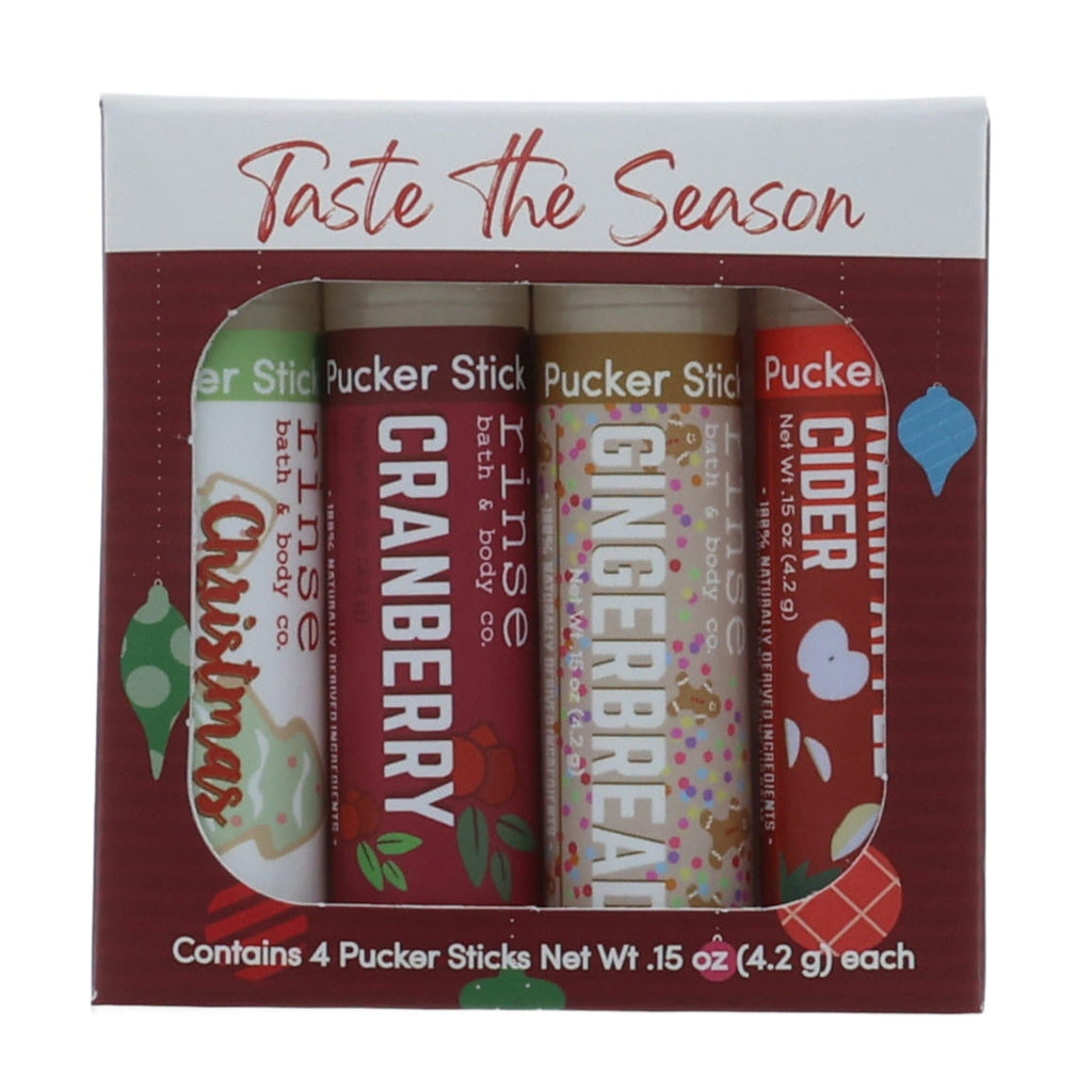 There's nothing "traditional" about these pucker sticks except for the recipe. Yes, it's the same goodness for your pout as our traditional Pucker Sticks, just with a sweet twist. Perfectly packaged flavors of Christmas Cookie, Cranberry, Gingerbread, & Warm Apple Cider.