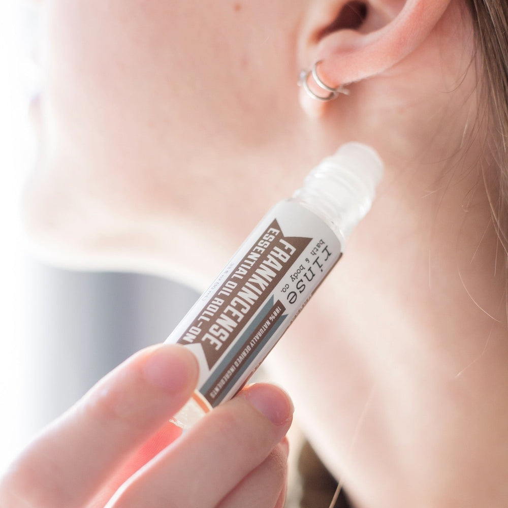 Essential oil roll-on in a squalane carrier — aromatherapy ready to wear. Frankincense essential oil roll-on—grounding &.