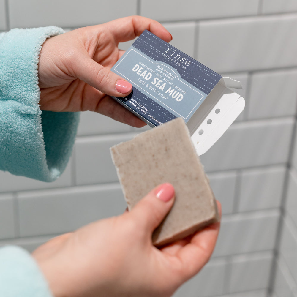 One of our most popular gift choices. Dead Sea Mud Soap Mini lets recipients experience Rinse without committing to full size. Tuck into gift baskets, stockings, or create a sampler.