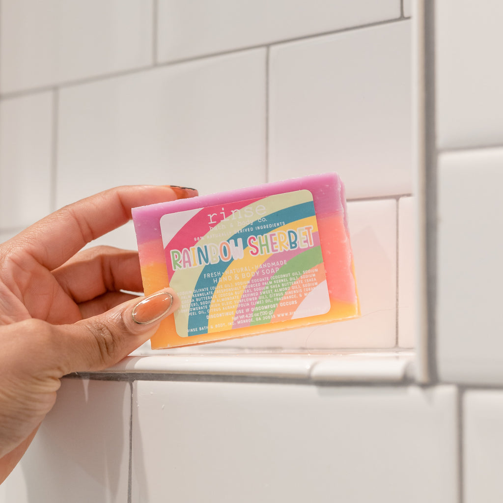 How to Use: Our Rainbow Sherbet soap is perfect for use as either a hand soap or an all-over body soap!